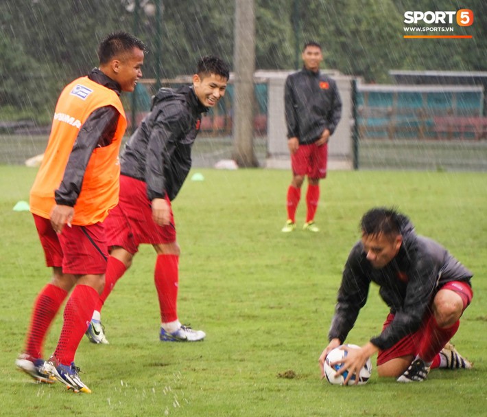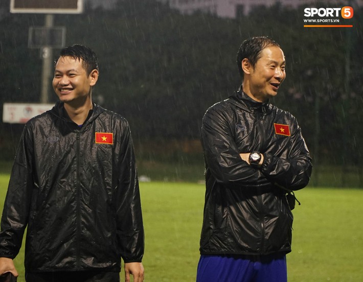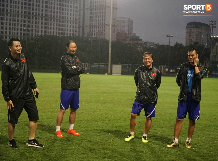 Thậm chí cuối buổi tập, vị chiến lược gia người Hàn Quốc cũng cười đùa khá vui vẻ với các trợ lý và trêu đùa các học trò. Ông cũng không quên nhắc nhở các cầu thủ cần phải giữ gìn sức khỏe sau khi phải tập luyện dưới trời mưa lớn.